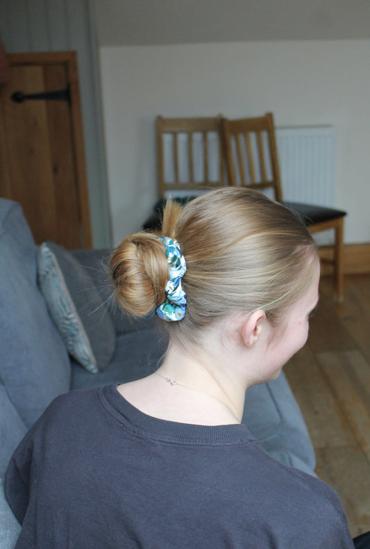 Blue Floral Hair Scrunchie - Rifle Paper Co Fabric