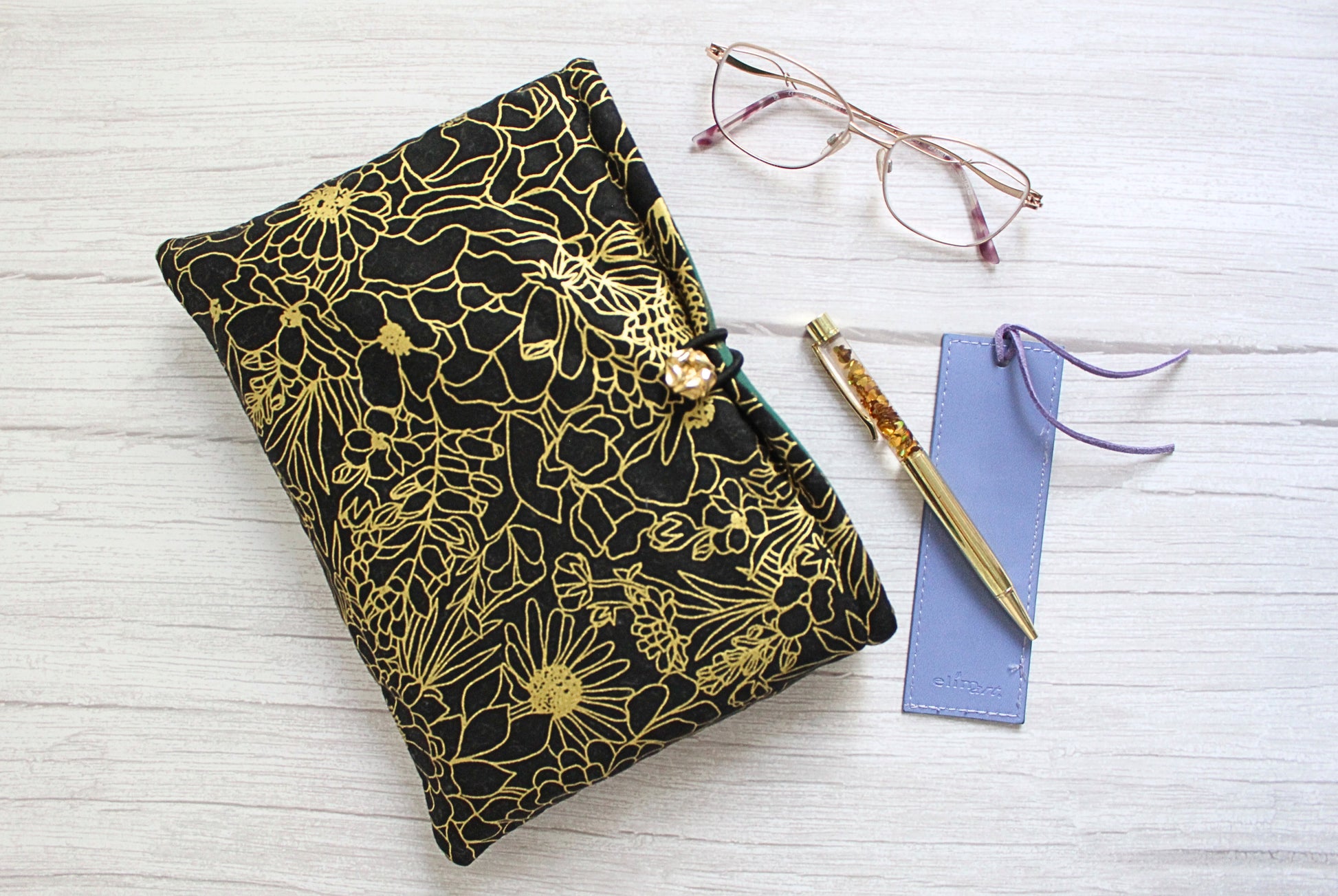 This handmade book sleeve is the perfect blend of style, functionality, and sustainability. Crafted from stunning black and gold floral cotton fabric, it offers a chic and elegant way to protect your favorite books, journals, or e-readers. Made from fabric remnants, this sleeve is an environmentally conscious choice without compromising on beauty or quality.