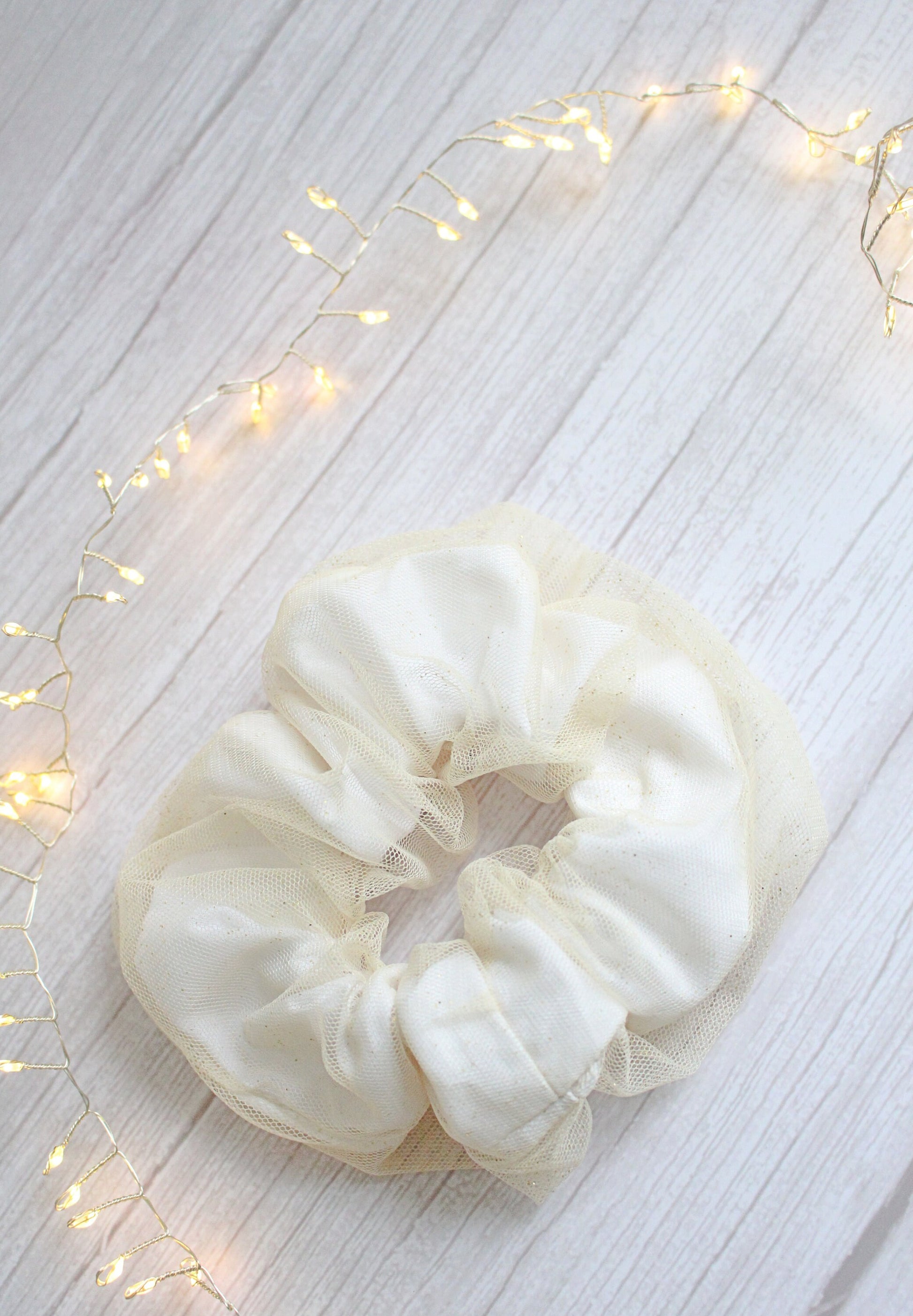 Handmade White & Gold Tulle Layered Hair Scrunchie