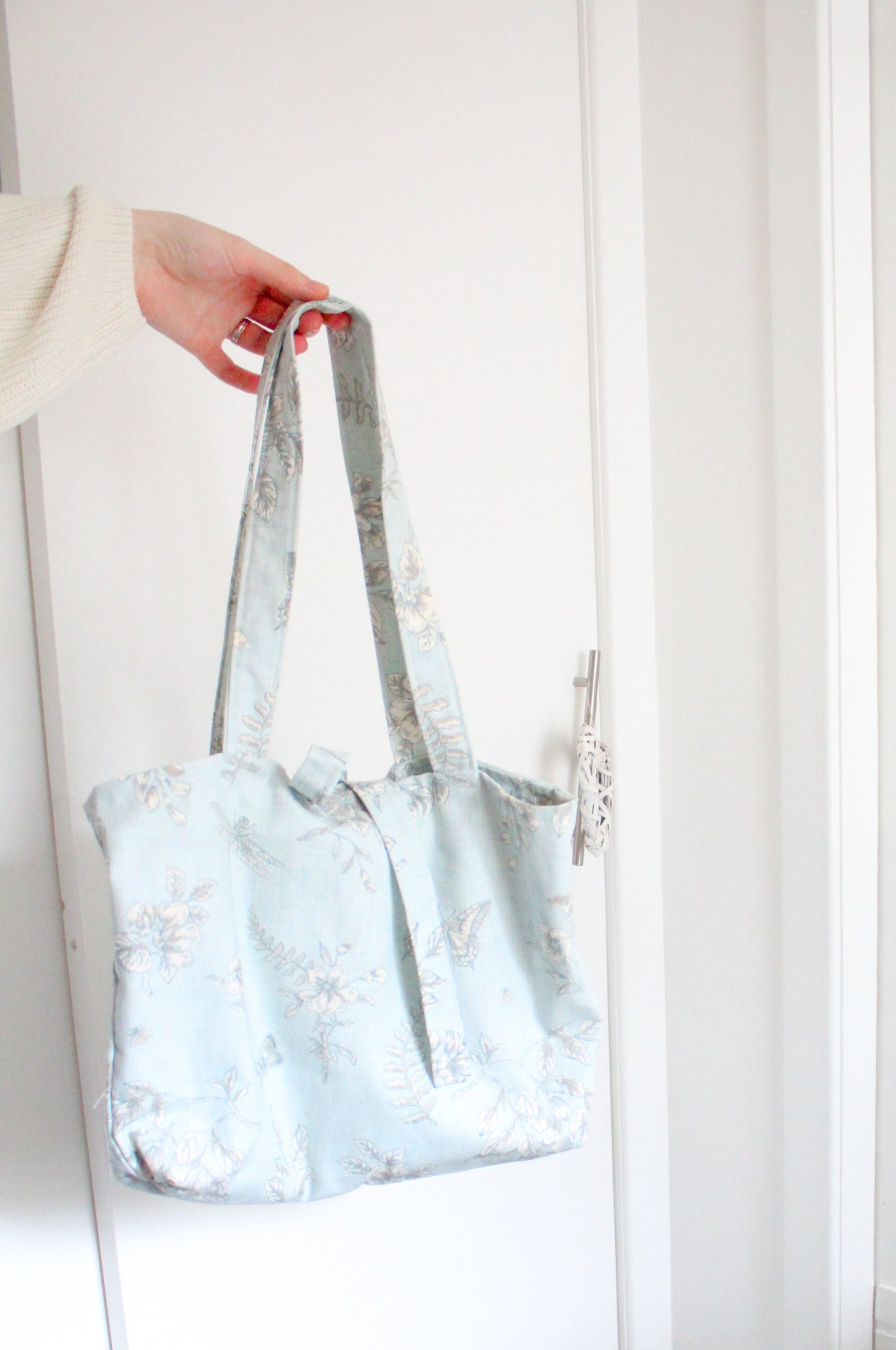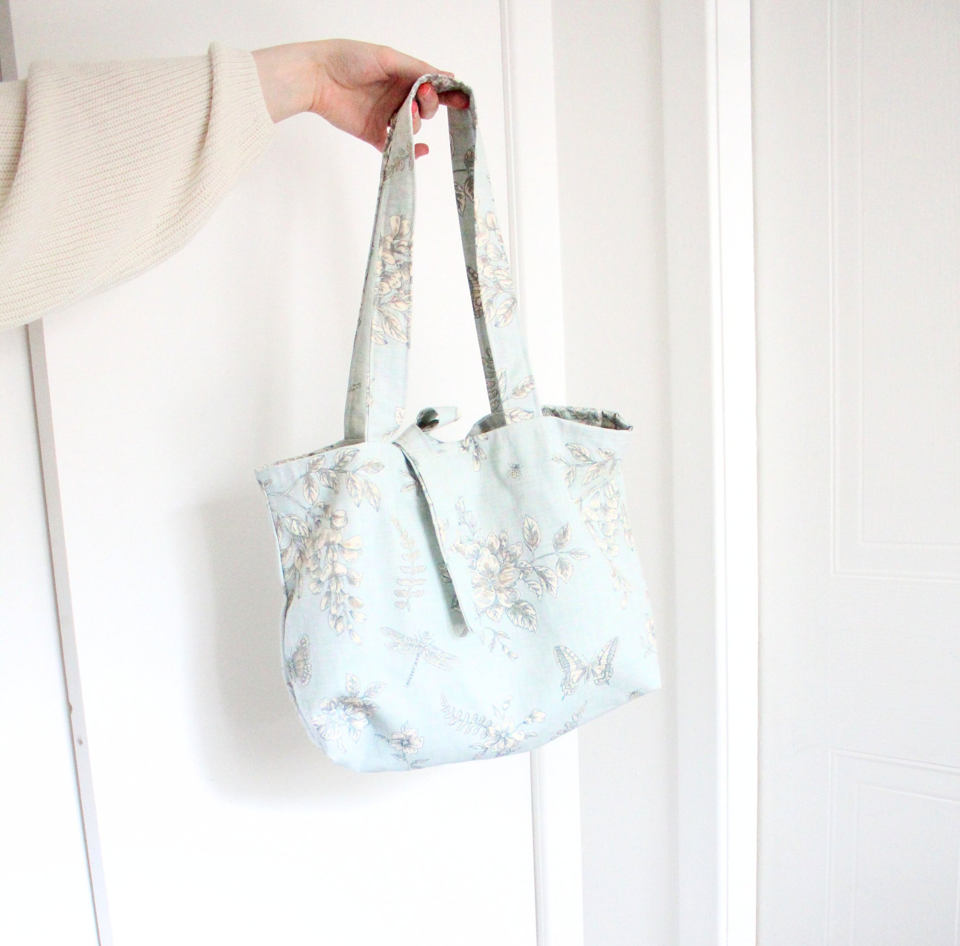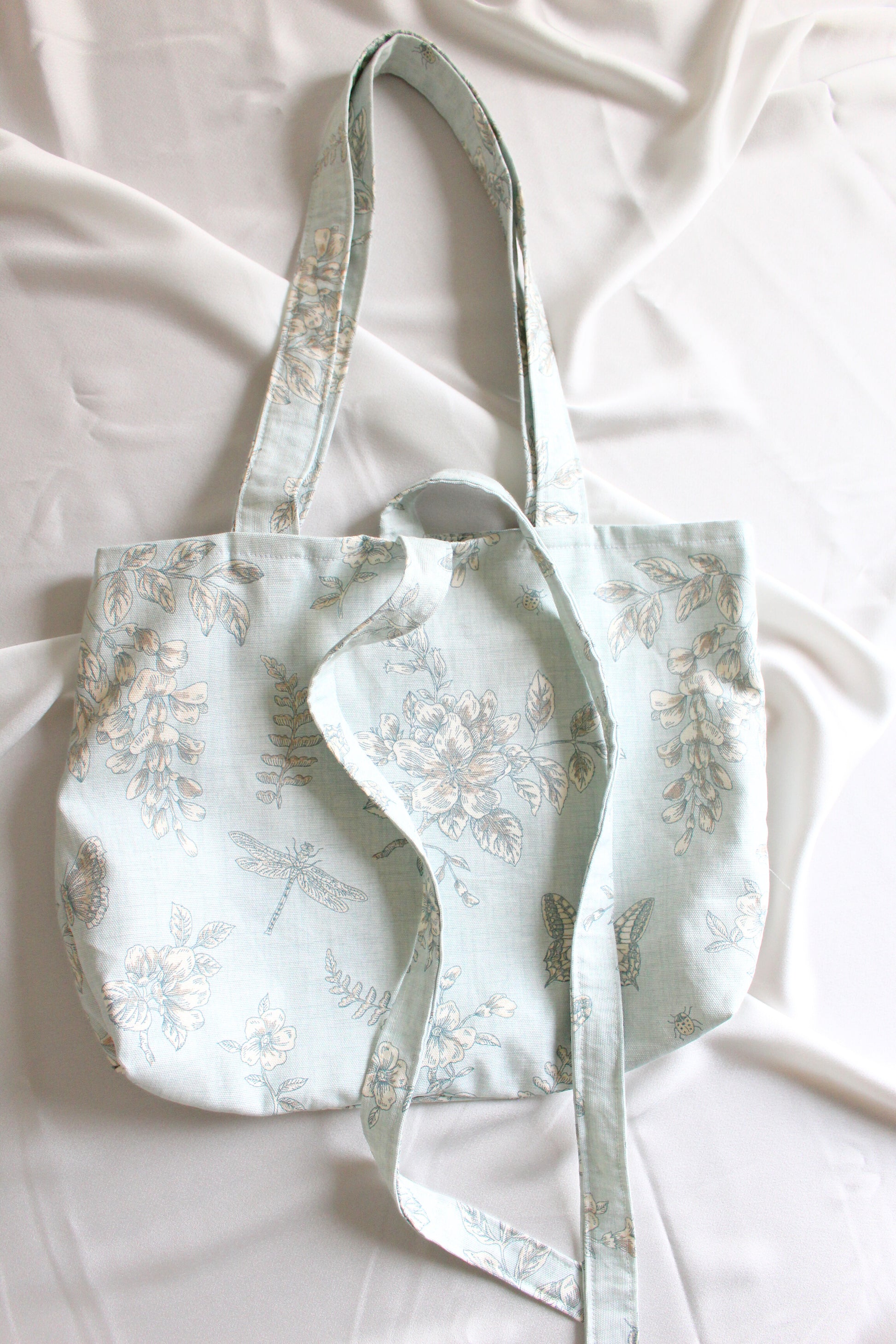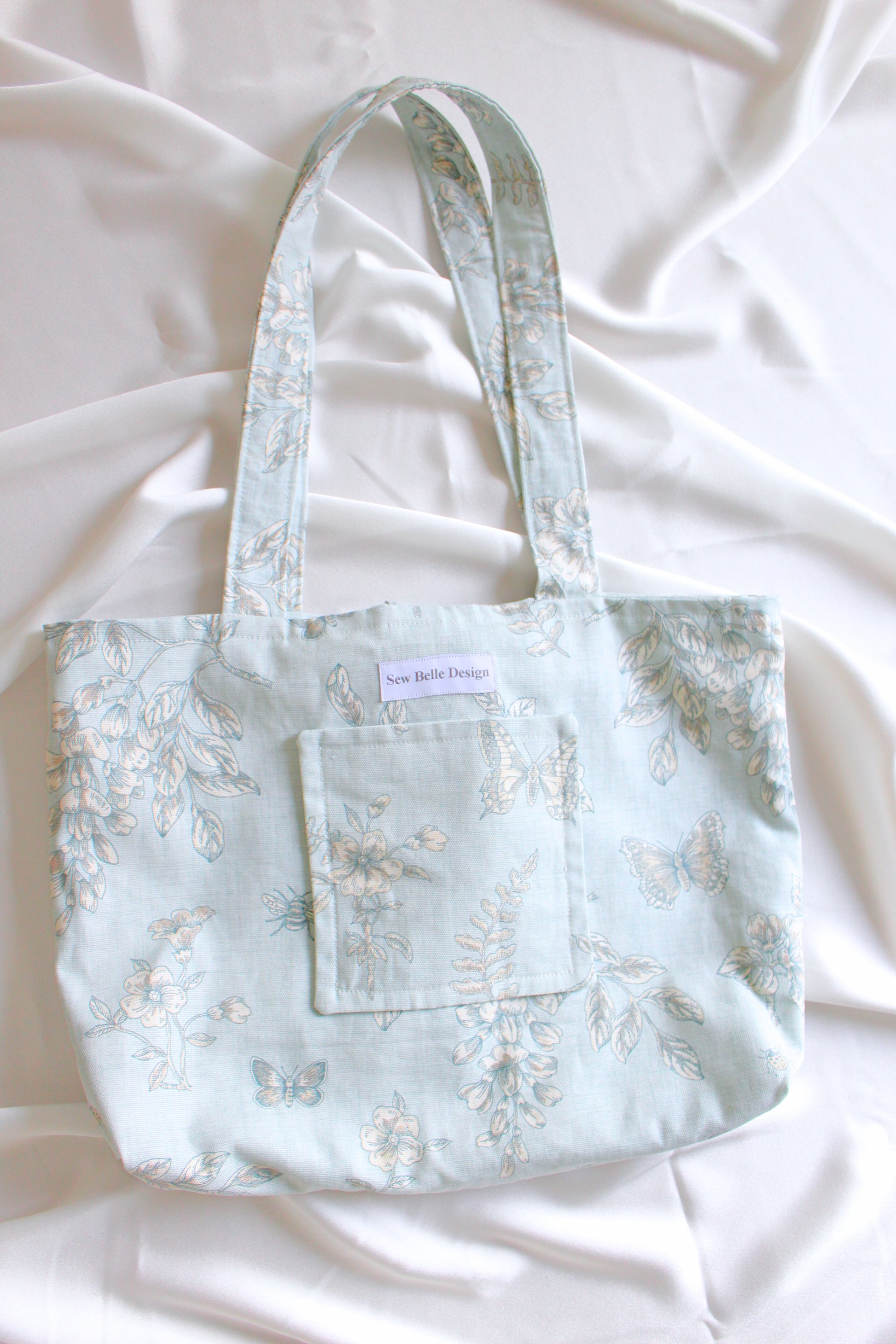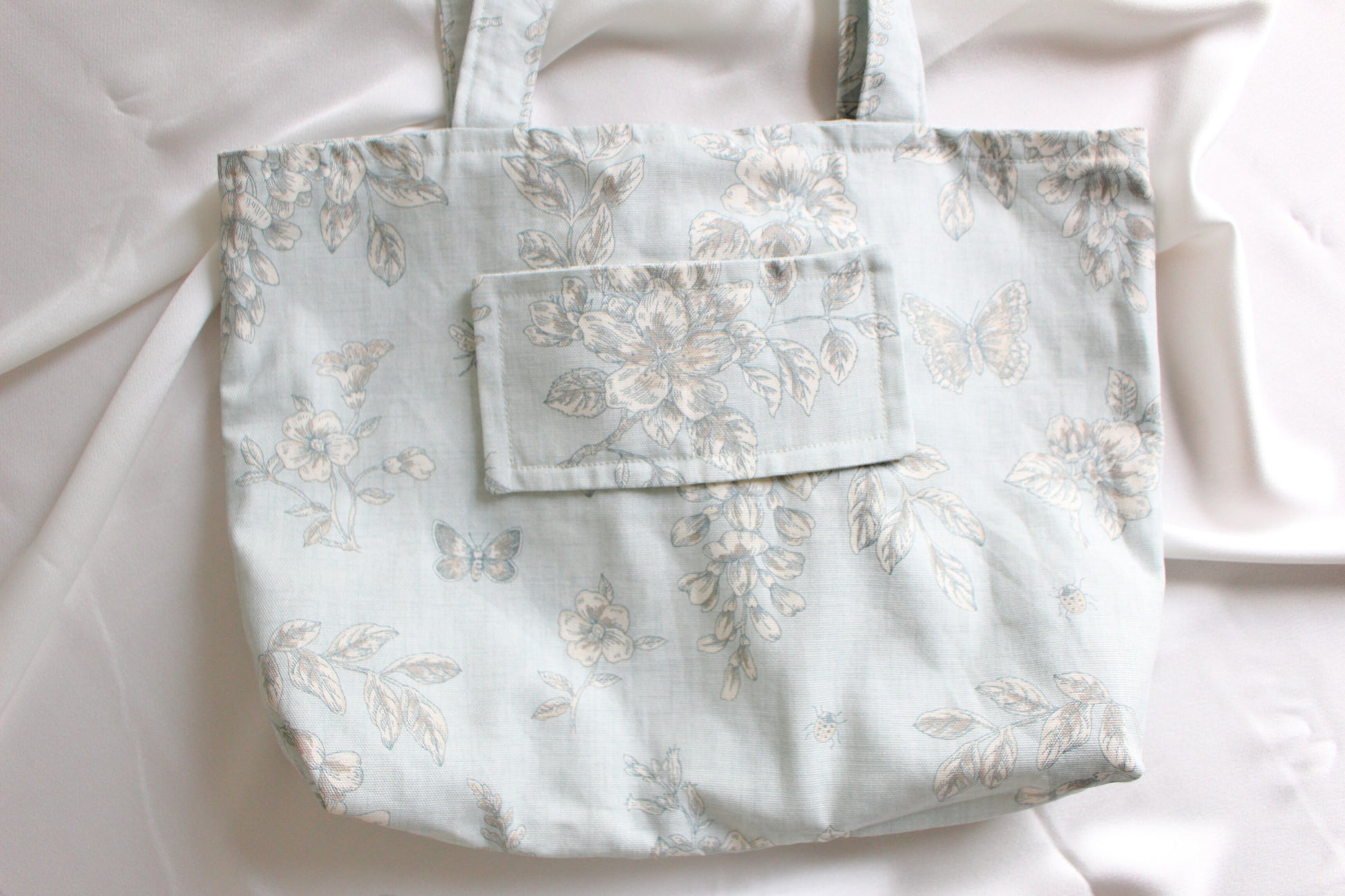 This tote bag adds touch of cottage-core style to your day to day life. The beautiful blue canvas fabric features a woodland print with foliage, butterflies, and ladybirds. The lining of the bag is made with matching fabric, meaning your bag is reversible depending on whether you would like the pockets on the outside or inside of the bag.