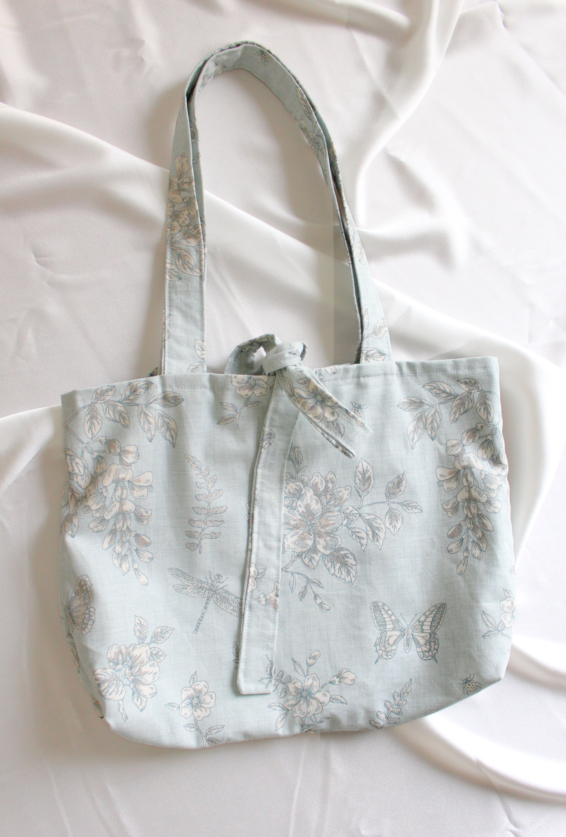 The Martha Tote Bag is designed to be both pretty and practical. With bow-tie closure, two inner pockets, and double stitched seams for durability.