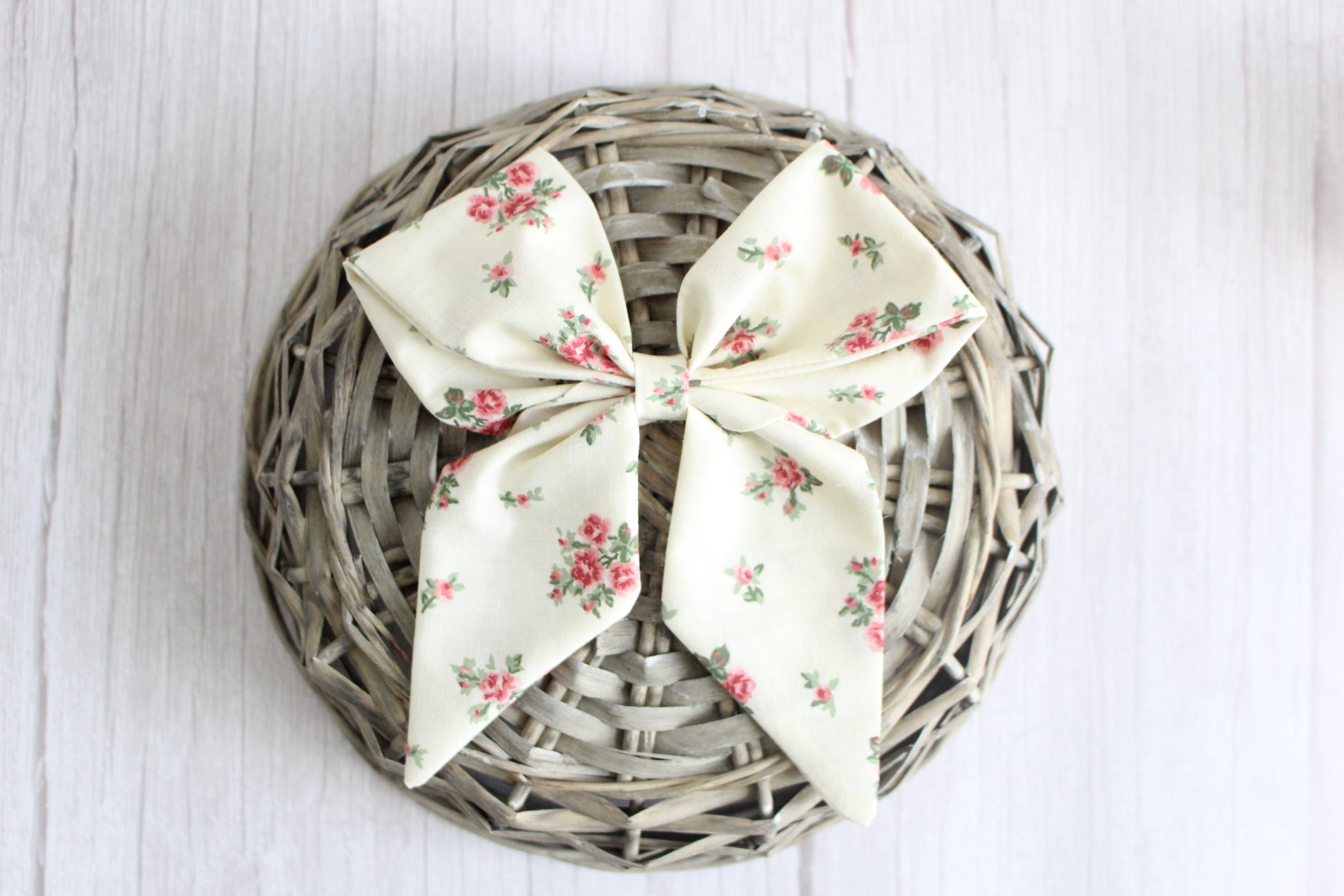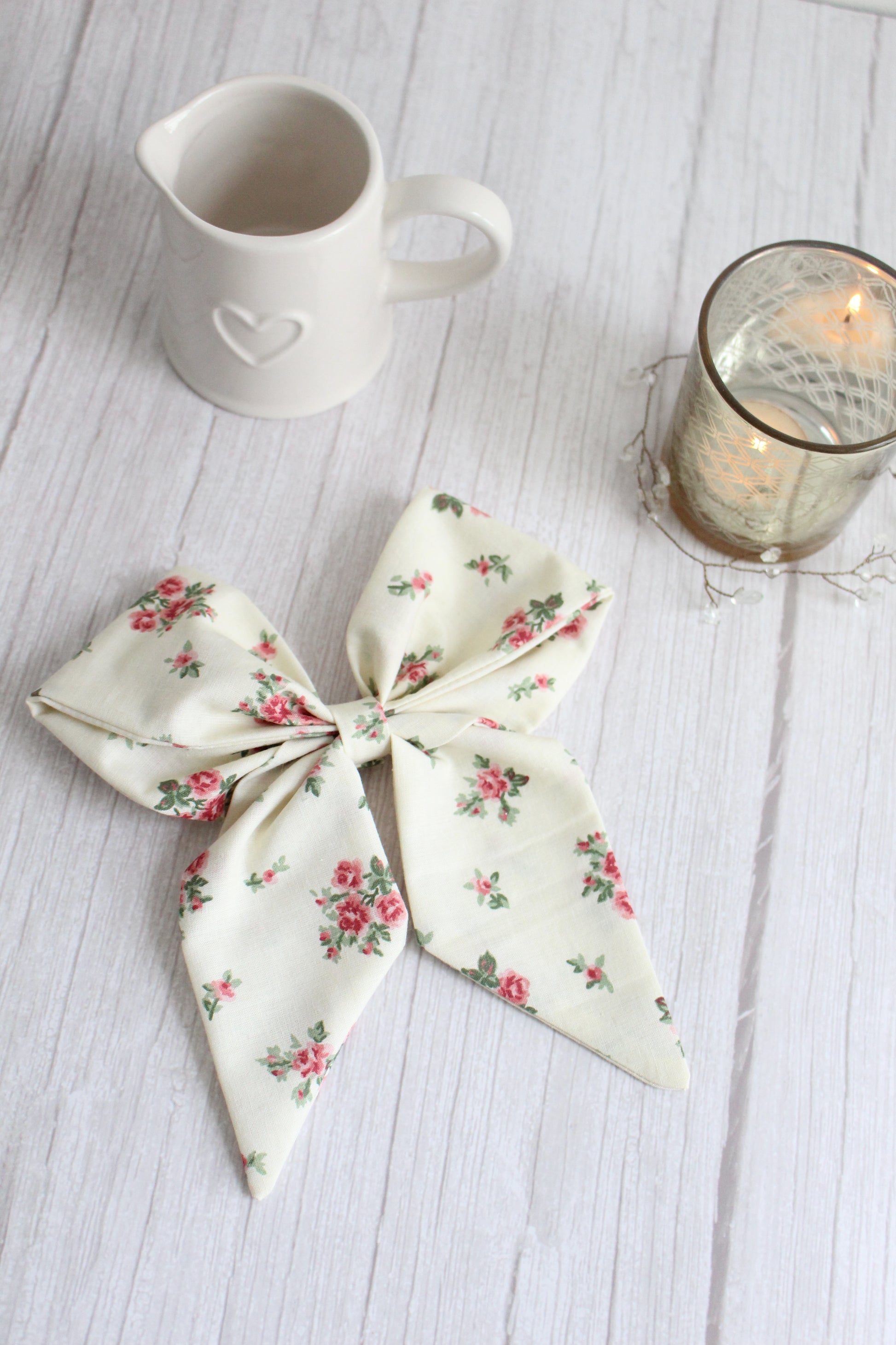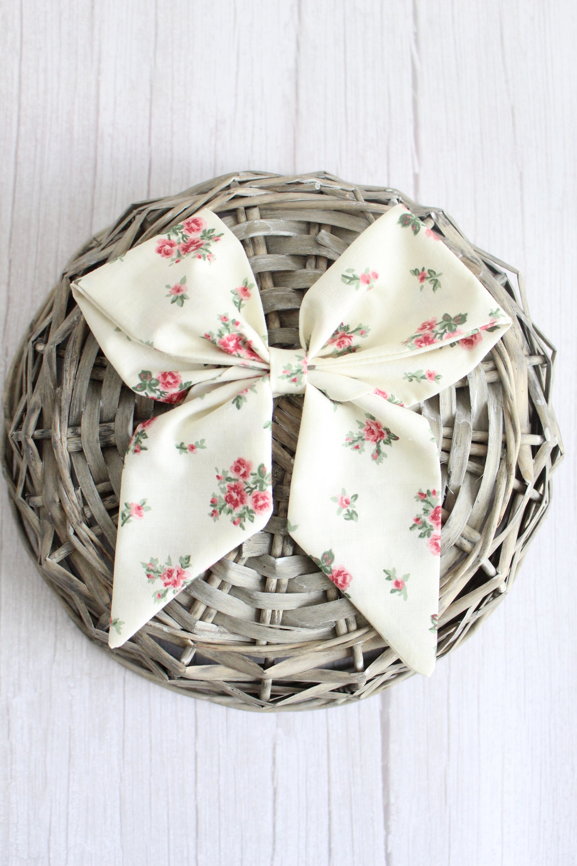 Pink & Cream Floral Hair Bow - Vintage Fabric