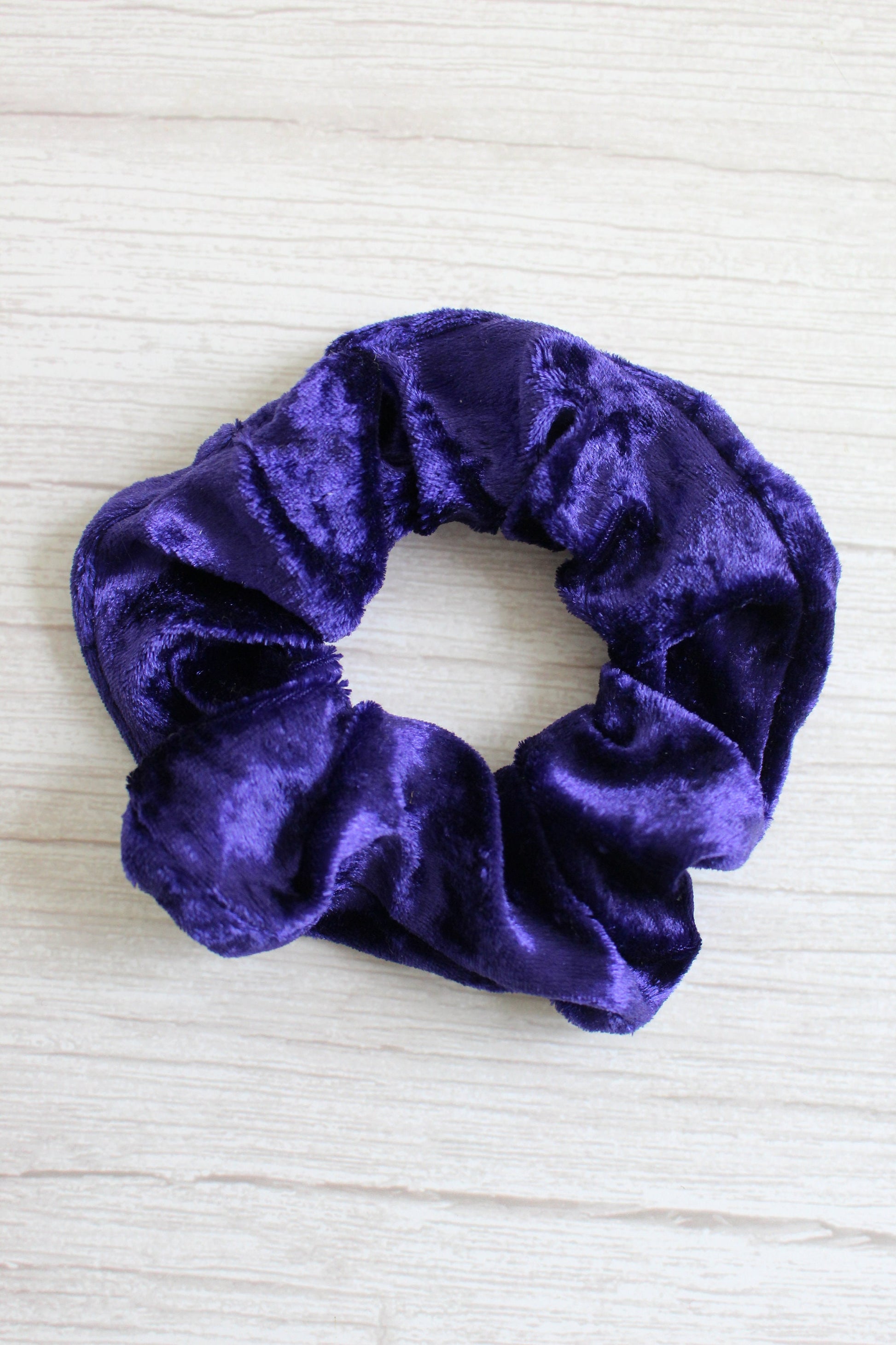 Regular sized hair scrunchie in a gorgeous, purple velvet. Made with thin elastic and measuring approximately 12cm in diameter.